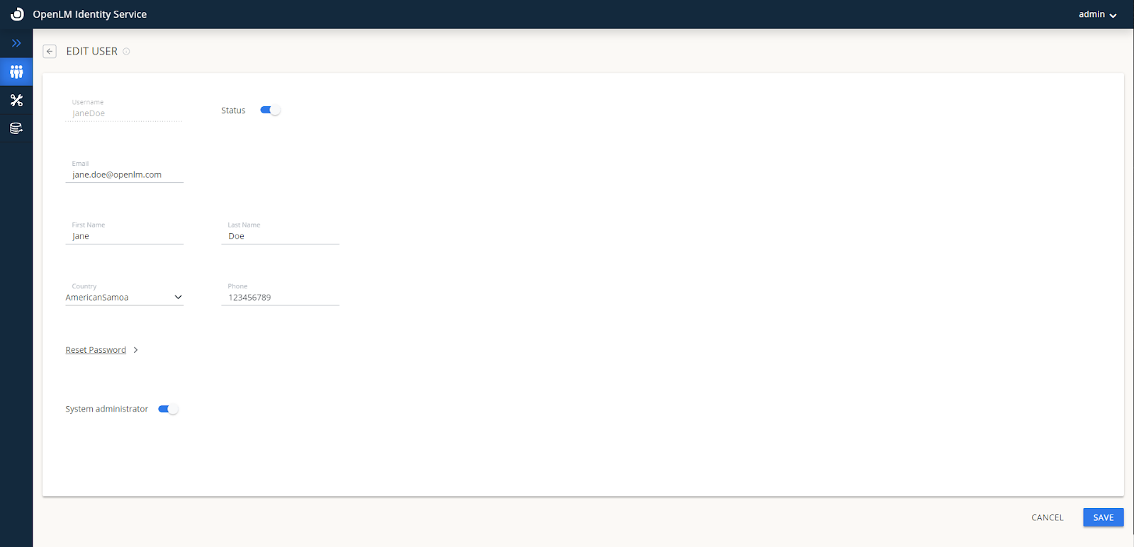 Note: If you want the user to be able to edit Identity Service settings, enable the System Administrator toggle button.