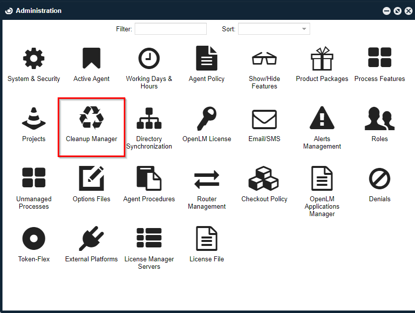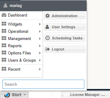 To open the cleanup tool, click the OpenLM User Interface Start button and then Administration: