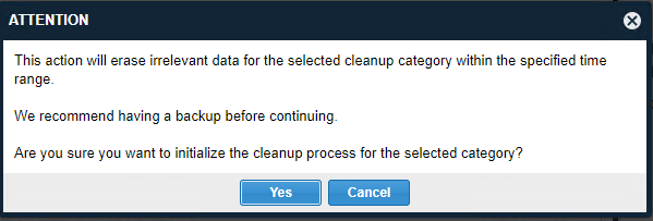 After you press the Run button Cleanup Monitor will open a pop-up window to assure the intended action is performed consciously. Select Yes to proceed or Cancel to Discard.
