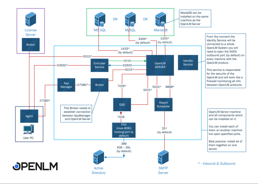 - 中央サーバーにOpenLM SLM、エンドユーザーのワークステーションにOpenLM Agent、そして最後に別の中央サーバーにアプリケーションマネージャーとBrokerが必要です。