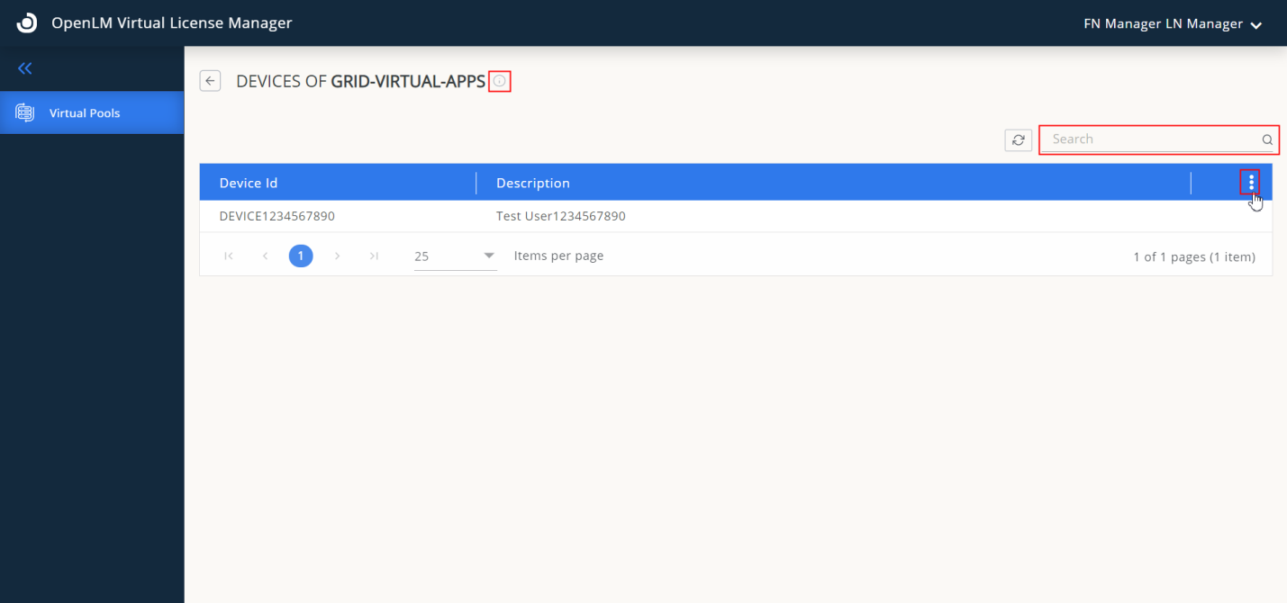 • Manage allocations: Managers can access a special page by clicking on the number of Device IDs in the Virtual Pool feature.