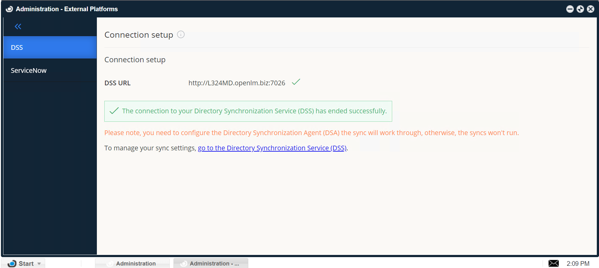 - You should see a success message confirming that the connection to DSS has been established successfully: