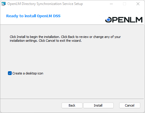 - The DSS is ready to be installed. Tick the box if you wish to create a desktop icon then click Install.
