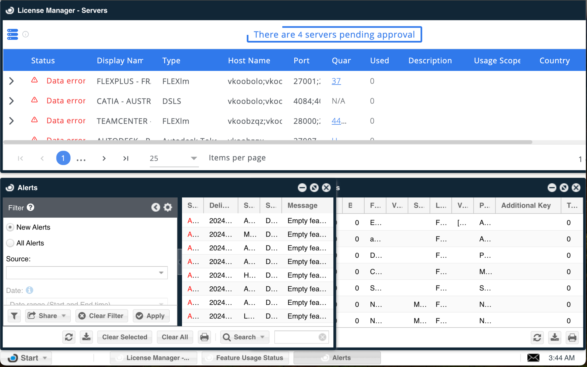 - Go to Start → Widgets → License Servers.