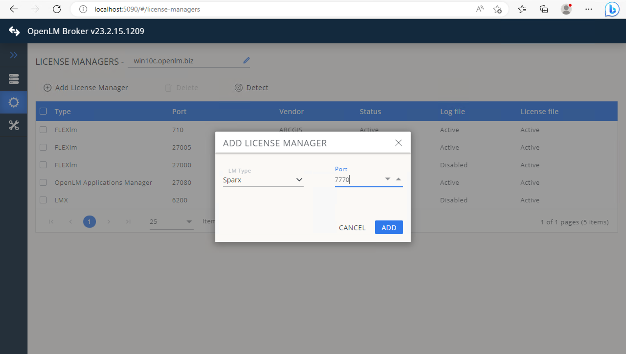 3. Select Sparx as the LM type, enter port (default 7770), and click Add.