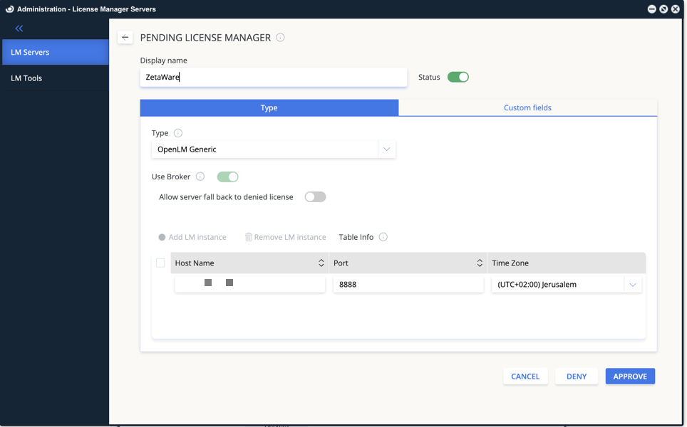 Double-click the pending ZetaWare entry. It will be displayed as OpenLM Generic.