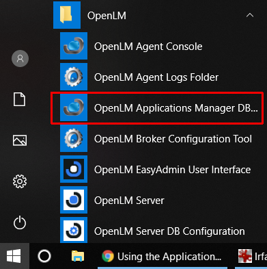 - The Windows Start Menu (Start → OpenLM → OpenLM Applications Manager DB Configuration)