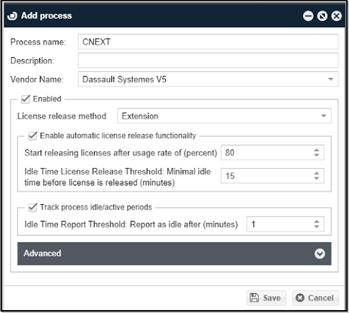 • Idle time license release threshold (minutes): Licenses will be marked as idle and released if they have been idle for more than the specified amount of time.