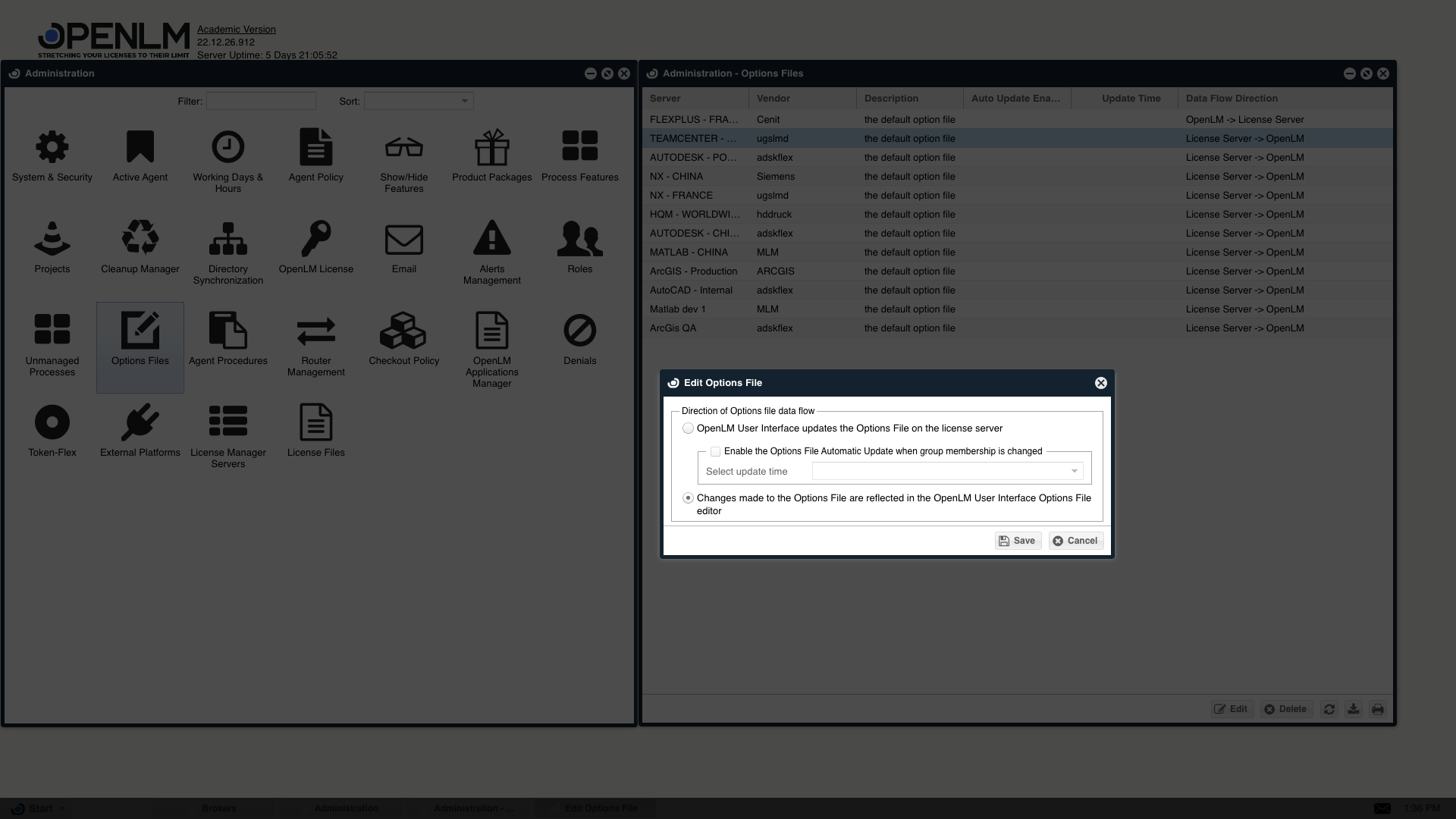- Options File management Using OpenLM EasyAdmin