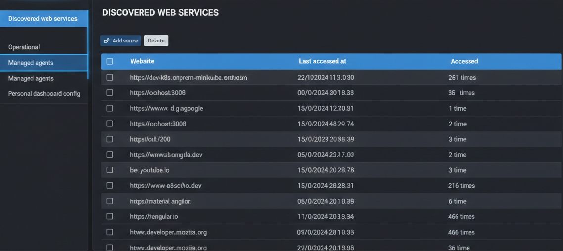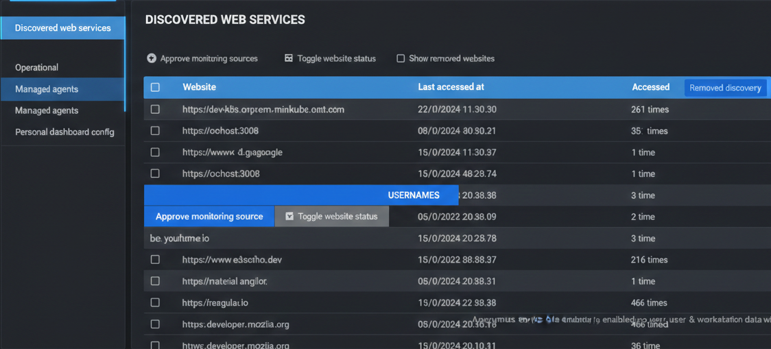 - Discovery of untracked web services: Uncovering previously unmonitored websites to provide a comprehensive view of online activity and reveal potential shadow IT usage.