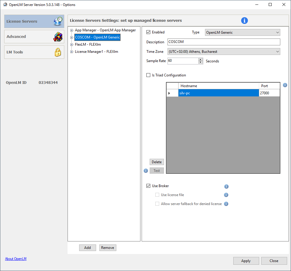 If the automatic configuration has failed, you can manually configure OpenLM Server to connect to the OpenLM Broker installation located on the COSCOM LicenseMonitor machine.