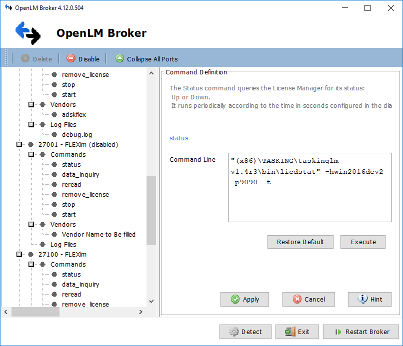 Broker also provides buffered communication, remote start/stop of the license service, and denials monitoring.