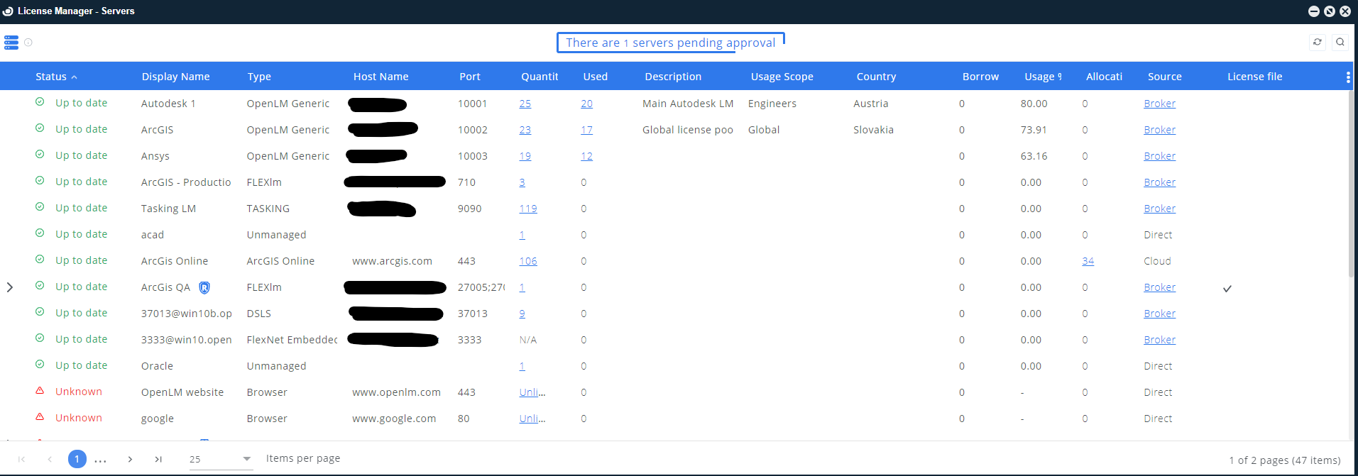 - Open EasyAdmin (Start → Widgets → License Manager Servers).