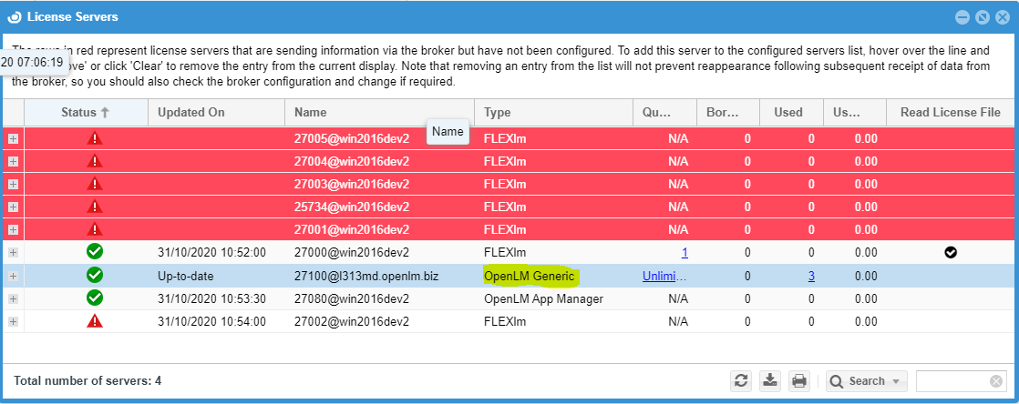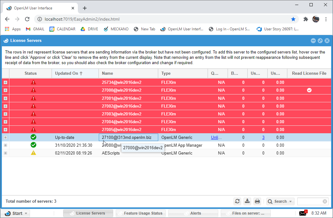 - In the License Servers window, hover over the red row that contains the details of the newly added OpenLM Generic (it is how AEScripts Licence Manager is reflected in the Easy Admin) Server entry and click Approve.