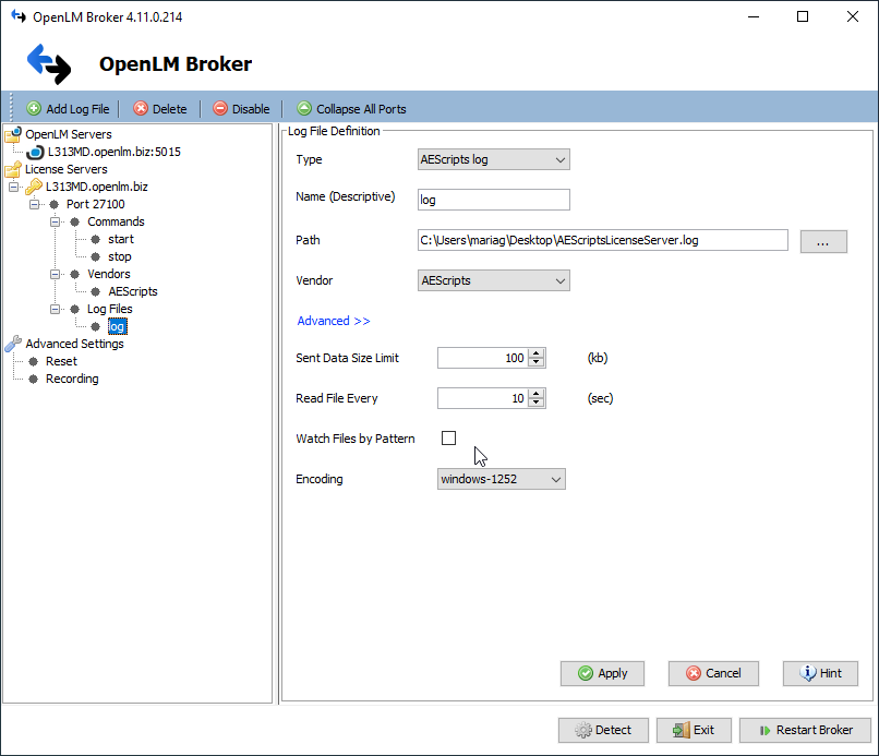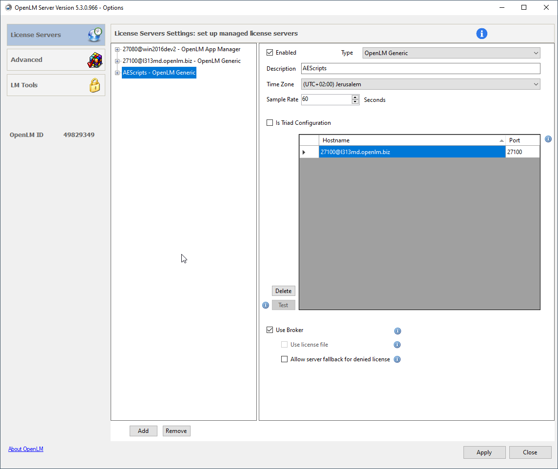 Additional: Configure the OpenLM Broker to monitor AEScripts using Broker UI