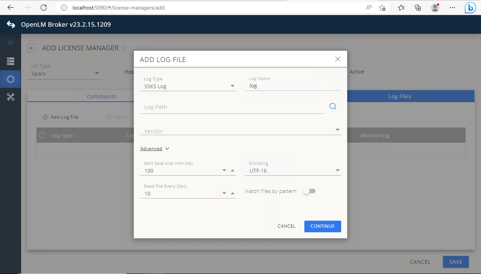 - Navigate to the License Managers tab → Add License Manager. A pop-up appears.