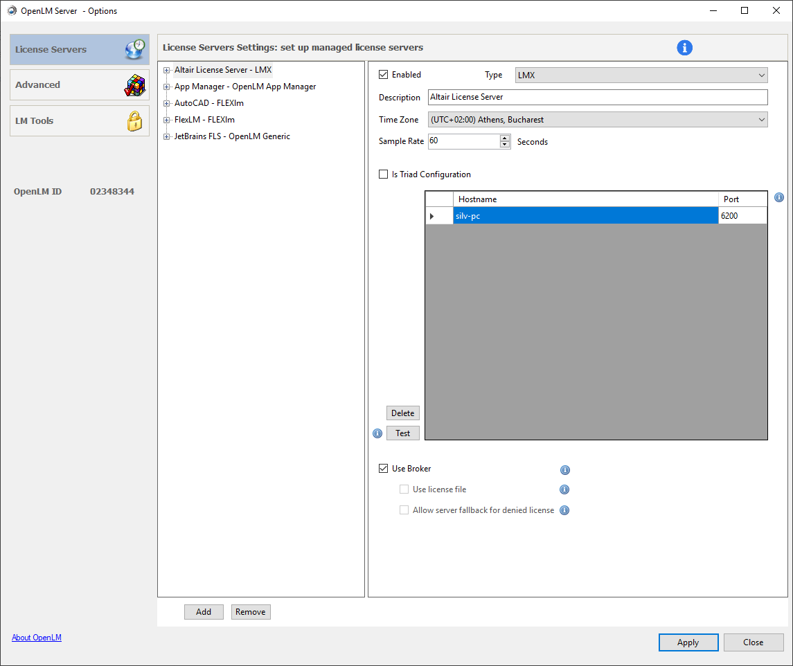 OpenLM Broker supports the automatic configuration of the Altair License Server.
