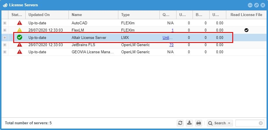 At this point, the Altair License Server has been automatically added to OpenLM Server and configuration is complete.