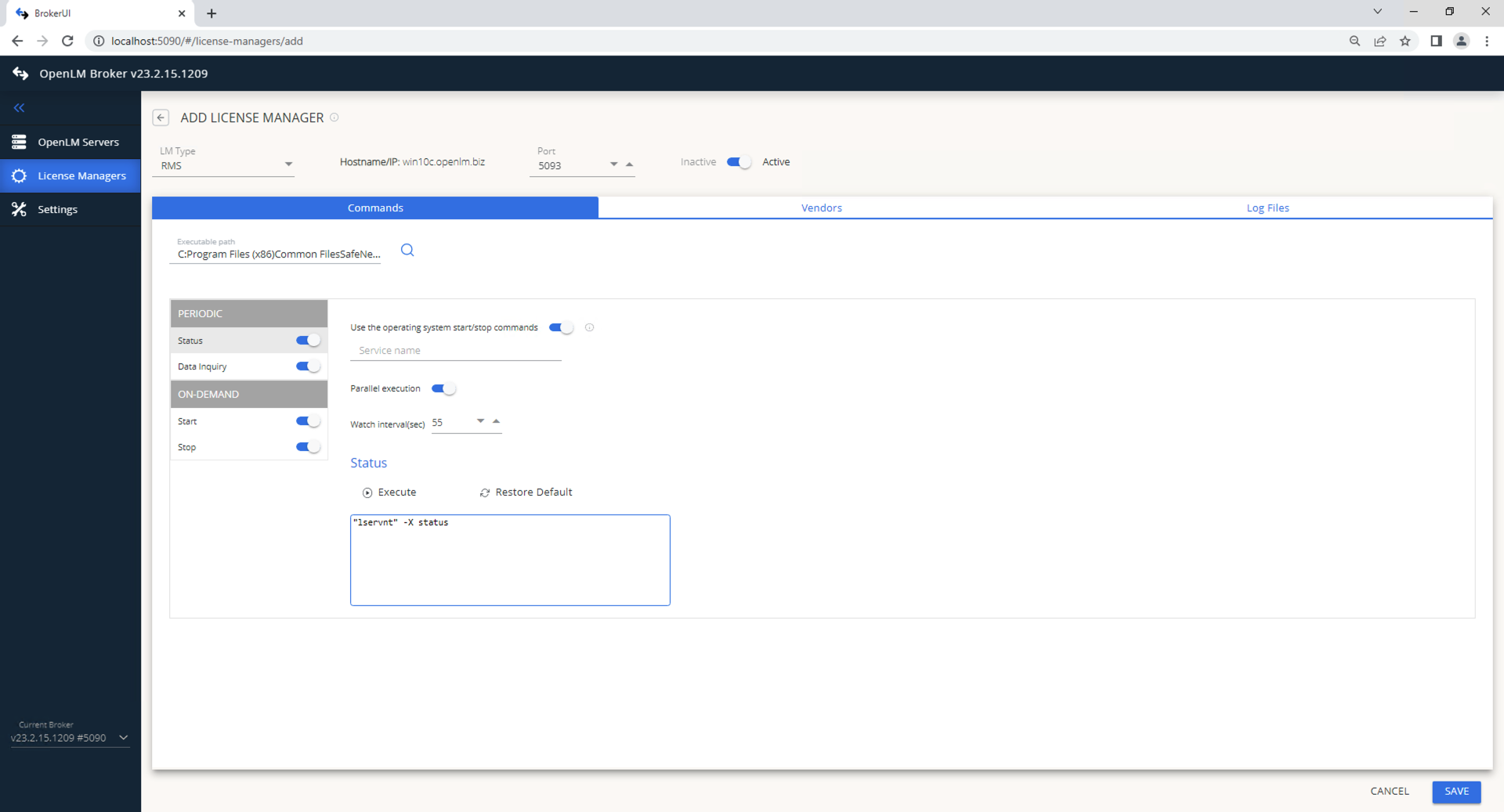 - You are on the Commands Tab now. Check if the path to the executable is correctly set (typically C: Program Files (x86)Common FilesSafeNet SentinelSentinel RMS License ManagerWinNT). You can either copy and paste the path or use the magnifier to browse to its location.