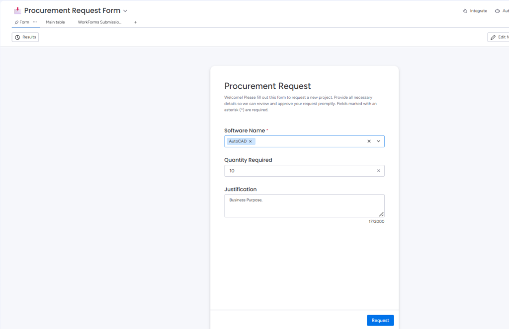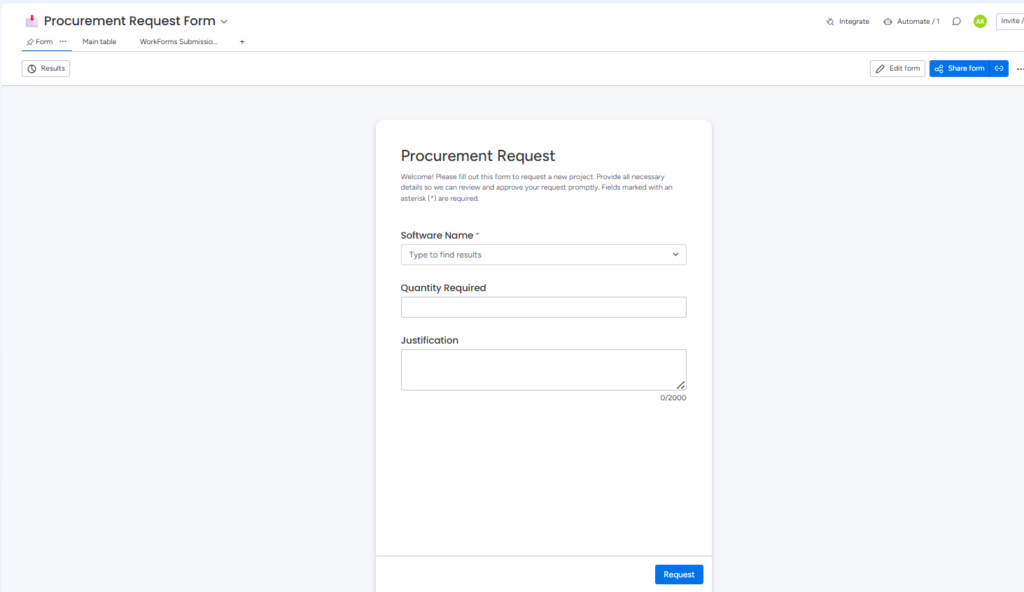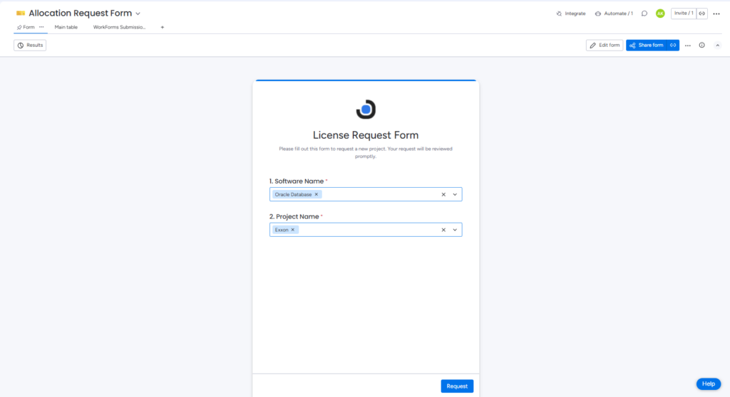 - License Procurement Request Form – Enables users to submit requests for procuring new licenses.