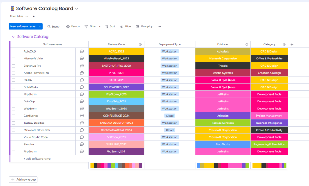 - Software catalog board – Catalog of software.