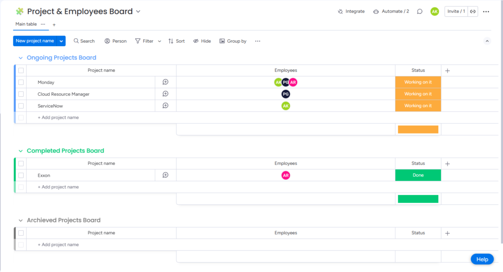 Project & Employee Mapping Board