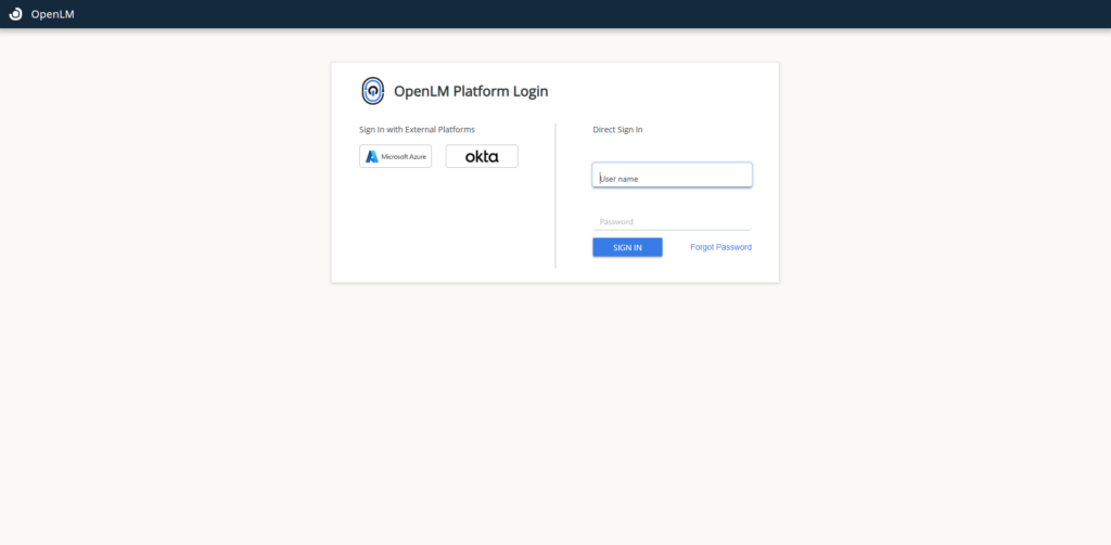OpenLM sign up/ login page