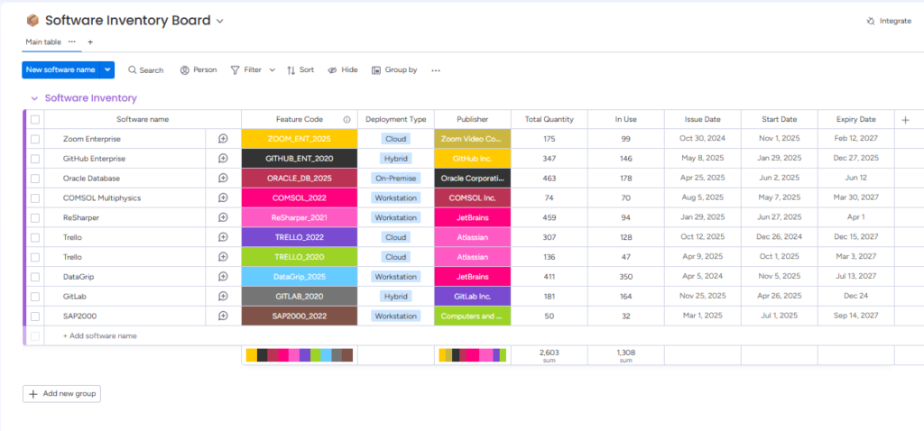 - Sync Primary Data: Trigger a synchronization to pull your full Software Catalog and current Inventory data from OpenLM into your monday.com boards for centralized tracking.