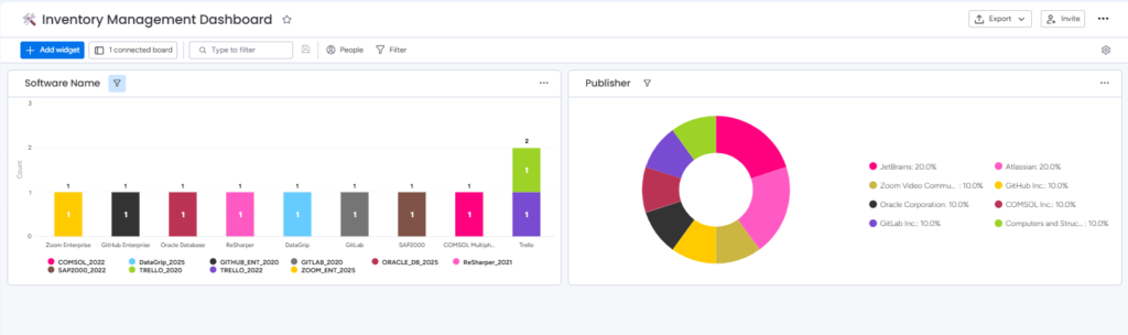 Inventory Management Dashboard – Displays an overview of items in software inventory board