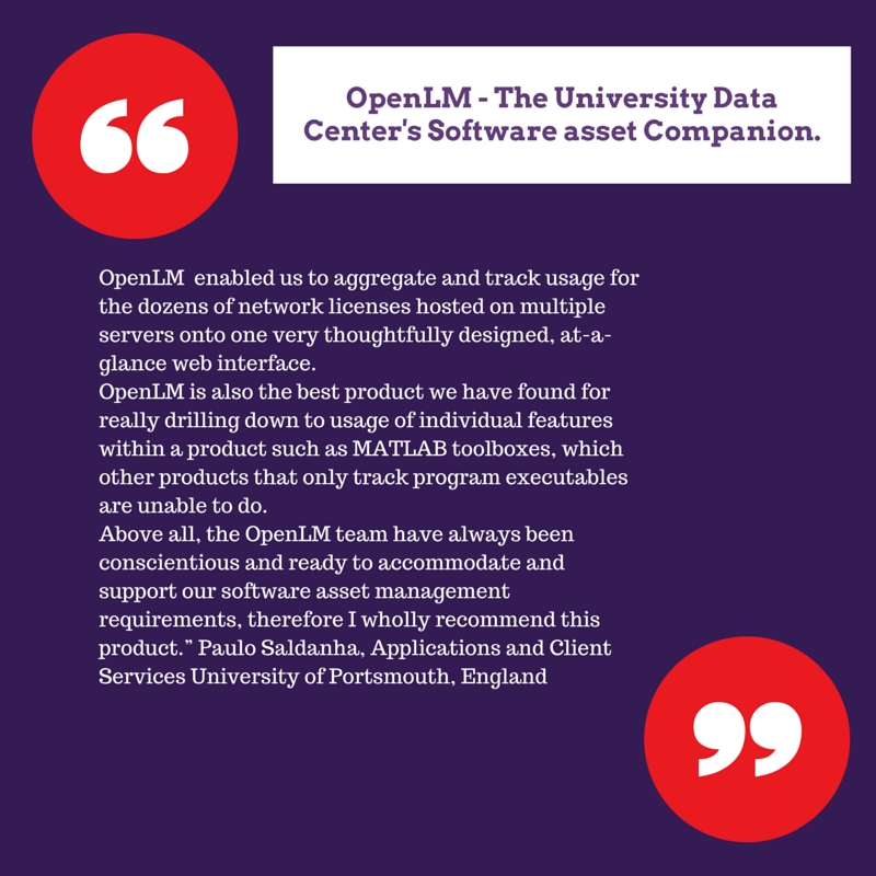 OpenLM eases the management of diverse license databases, and introduces the option for cost allocation per usage for software licenses, thus reducing usage costs considerably, and minimizing the need for further license acquisition. Currently OpenLM is being used by more than 80 world renowned universities.