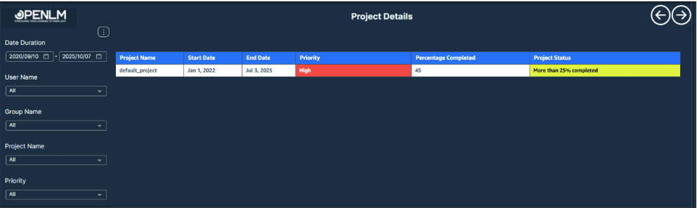 Project Report Table with Status, Dates, and Priority for Effective Tracking.