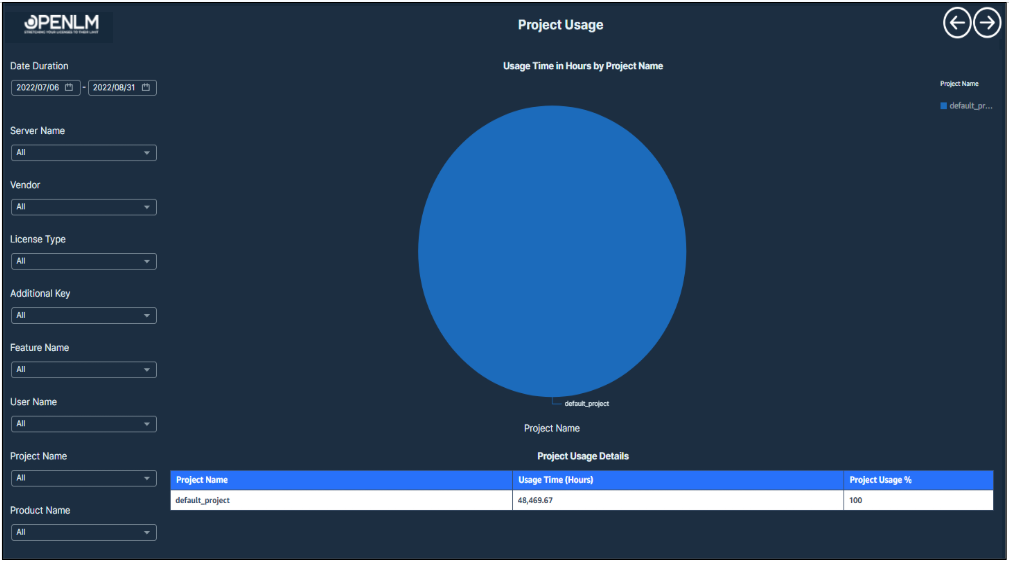 License consumption categorized by project for project-based resource planning.